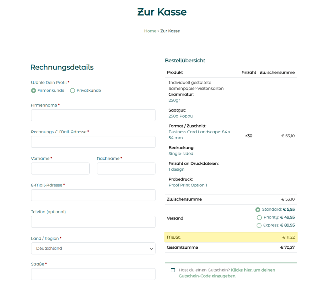 Die Berechnung erfolgt automatisch im Checkout-Prozess.