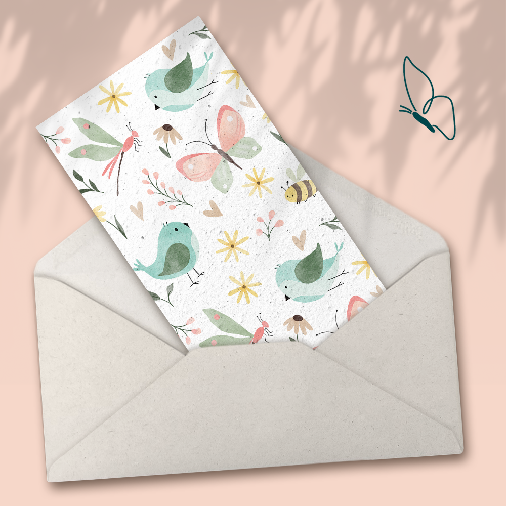 Printing circle-shaped cards out of seed paper combines a unique design with sustainability. Made from recycled paper embedded with seeds, these cards carry your message and then transform into beautiful flowers, herbs, or plants when planted. It’s an eco-friendly way to make a memorable impact.